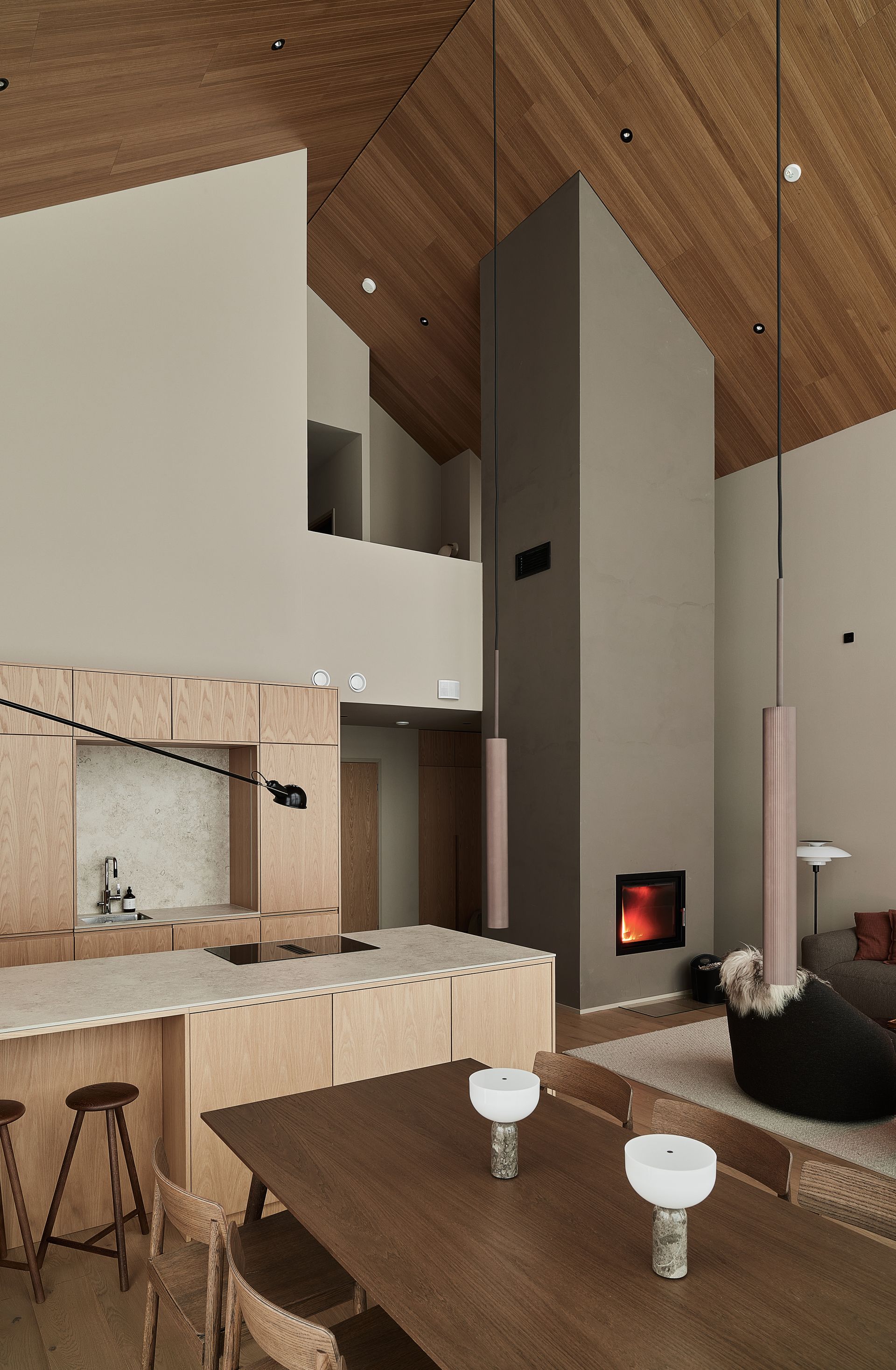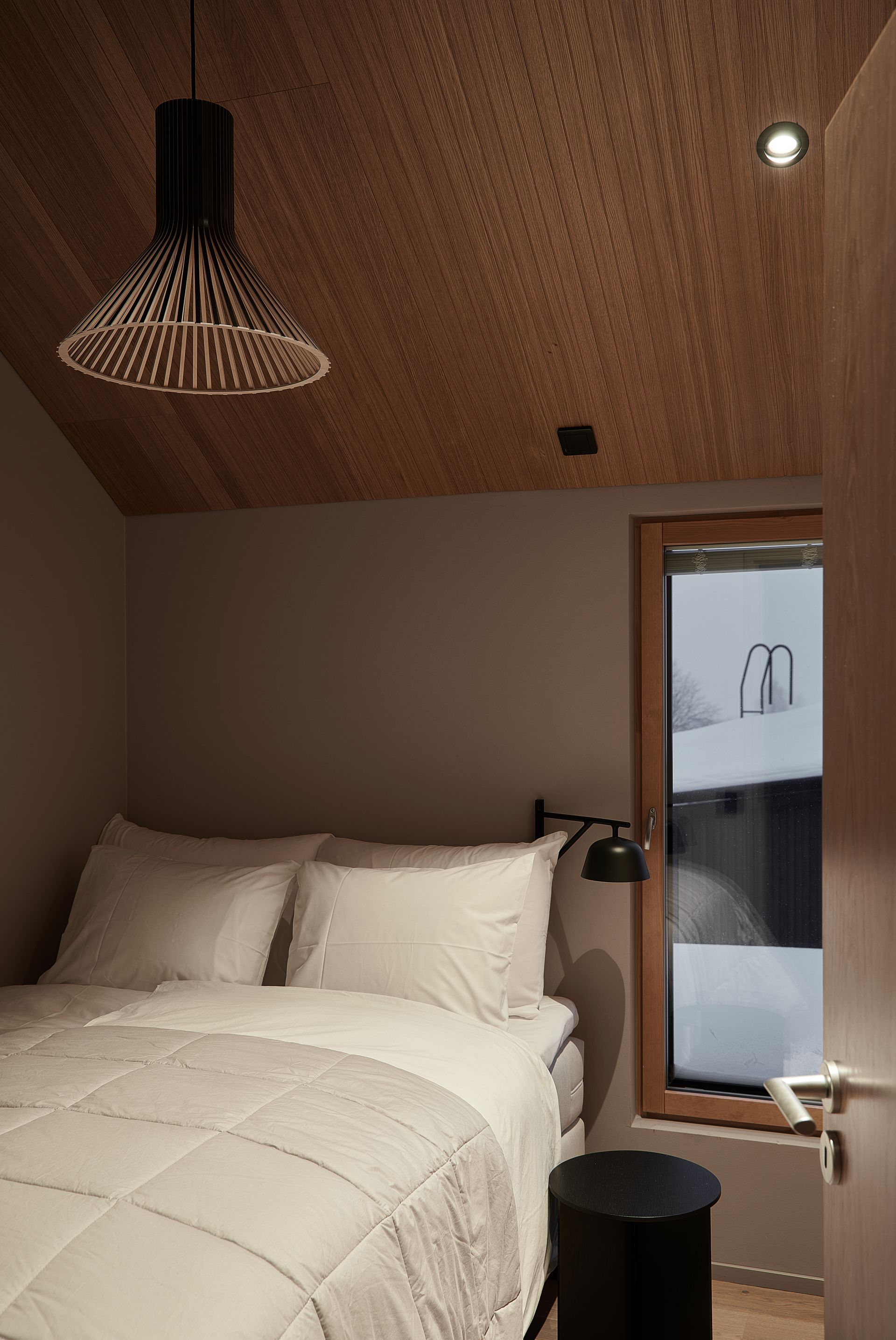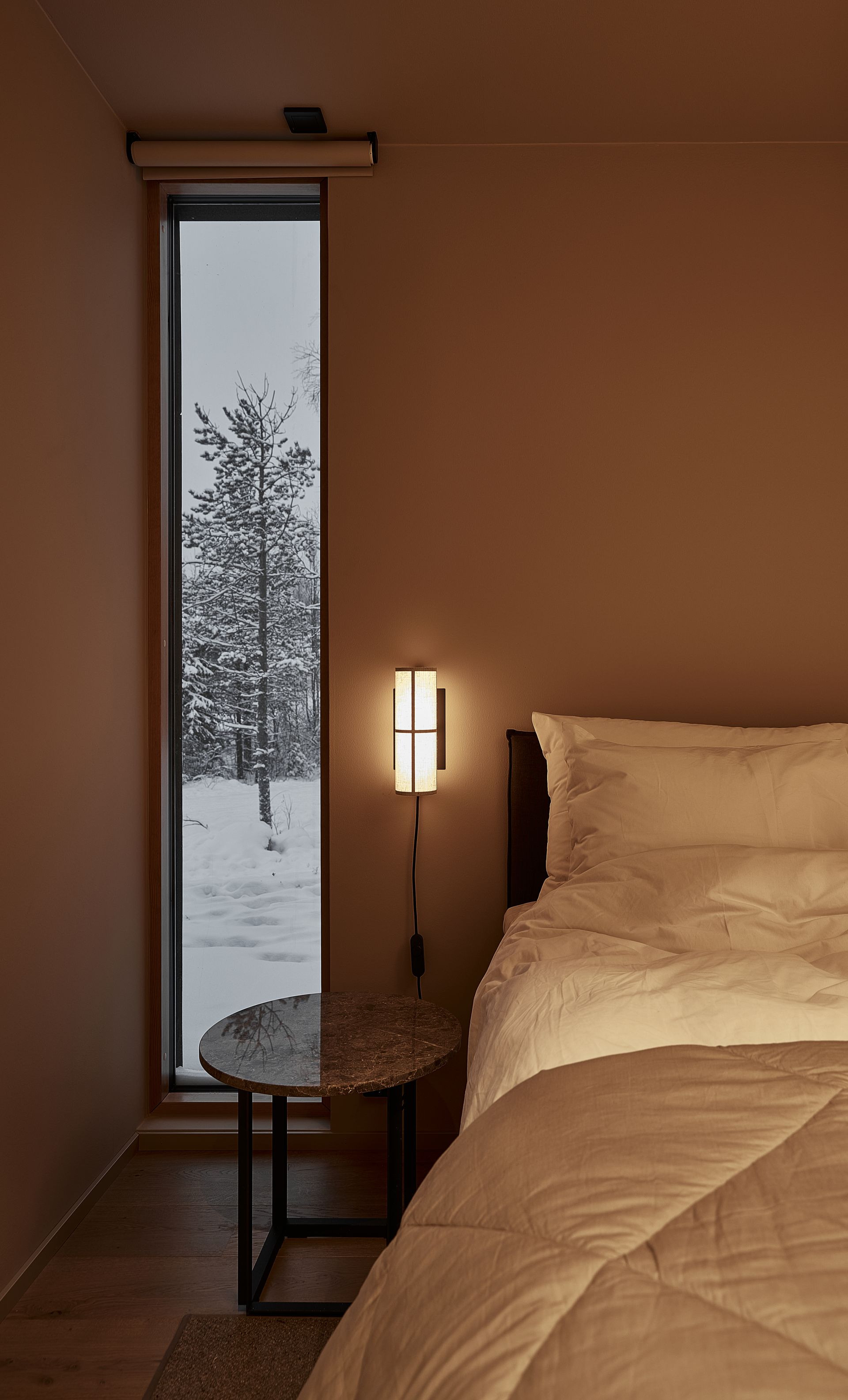 The House of Northern Lights is the largest and most luxurious villa at Joiku Resort, providing an exceptional setting for relaxation and quality time together. The villa features four bedrooms, two modern bathrooms, and a private electric sauna. From the living room’s expansive windows, guests can admire the striking fell landscape while enjoying the warmth of the fireplace. A fully equipped kitchen and an inviting dining area ensure that shared meals are both effortless and enjoyable. Additional convenience is offered by a separate utility room and a practical walk‑in closet.