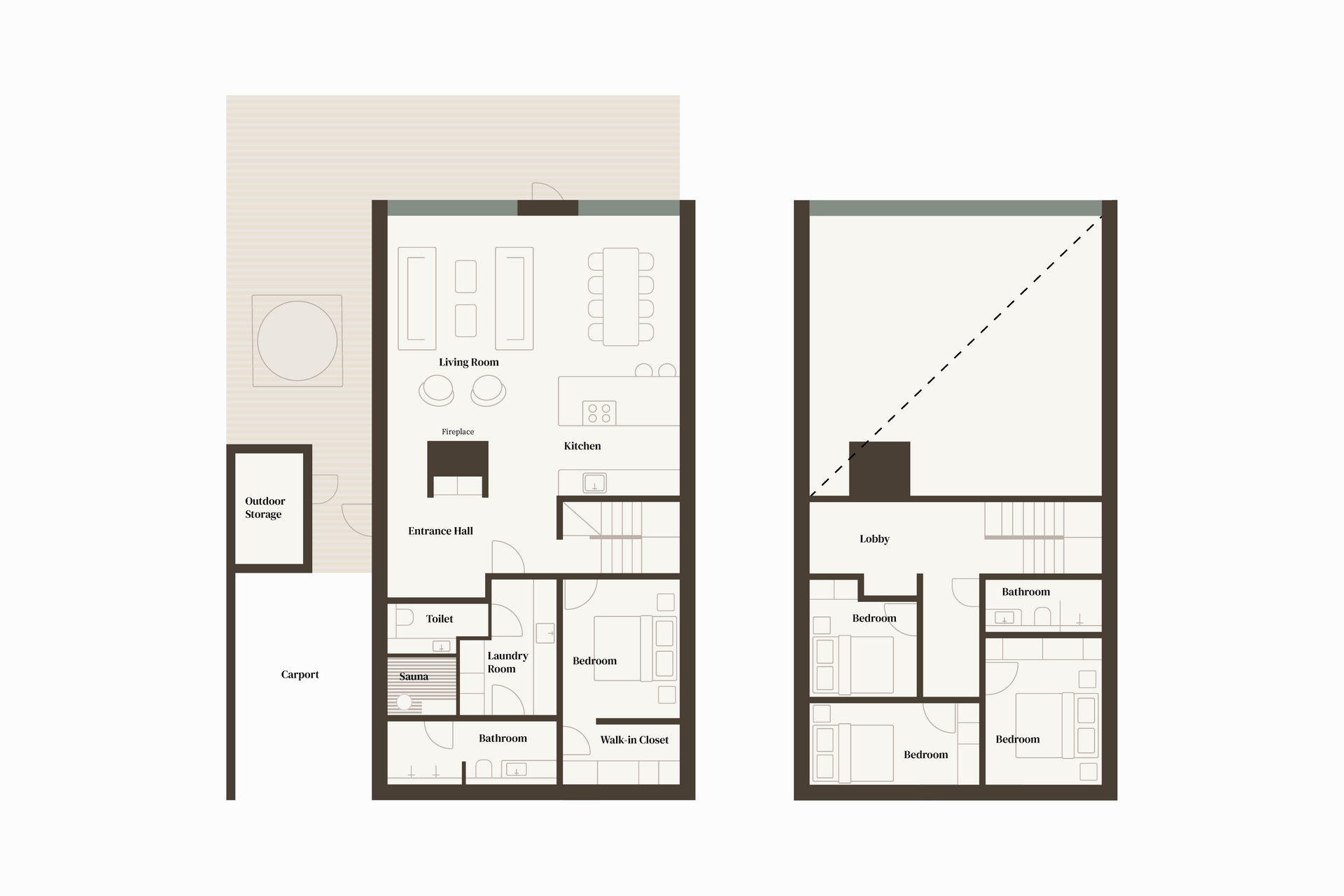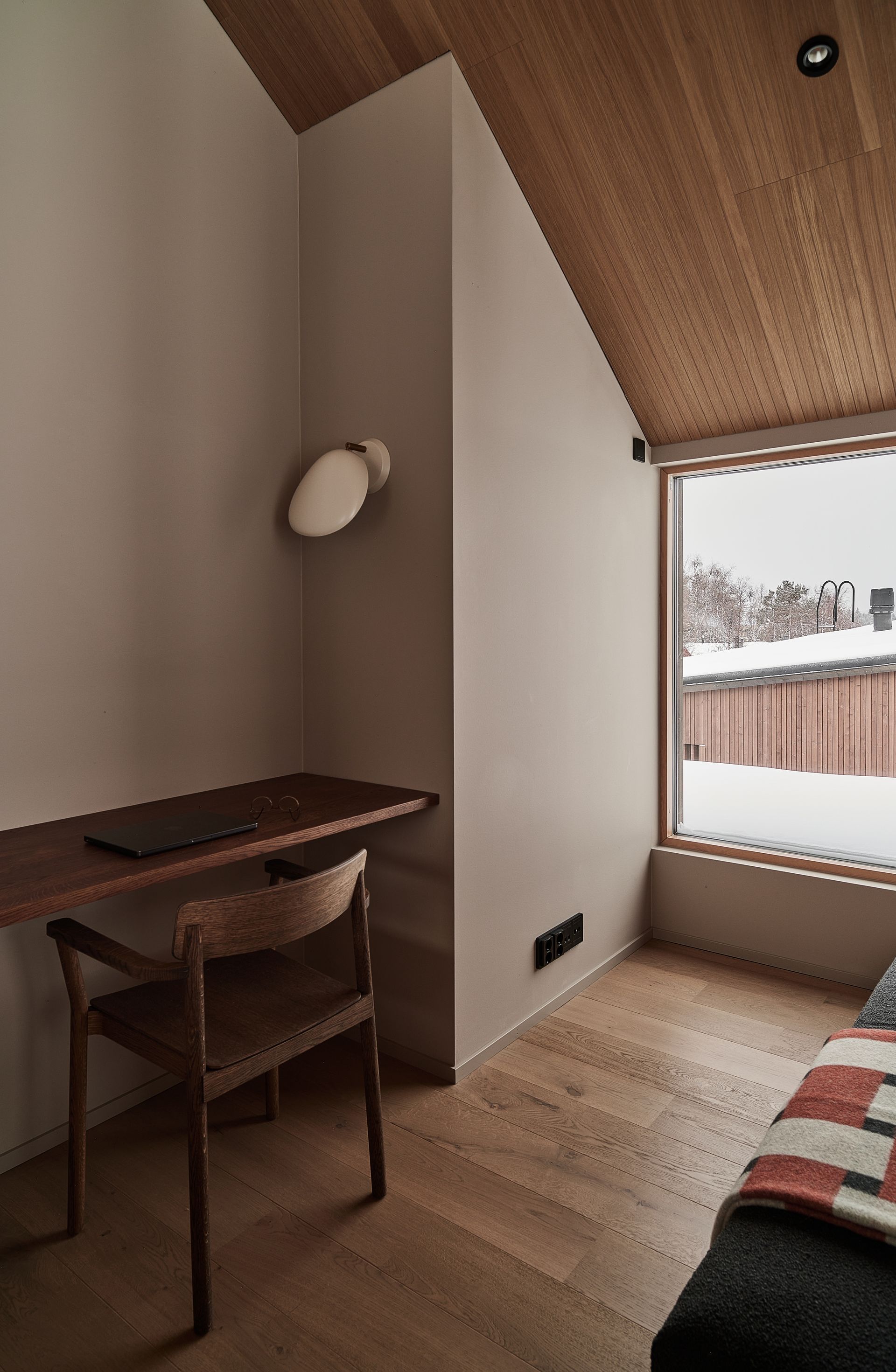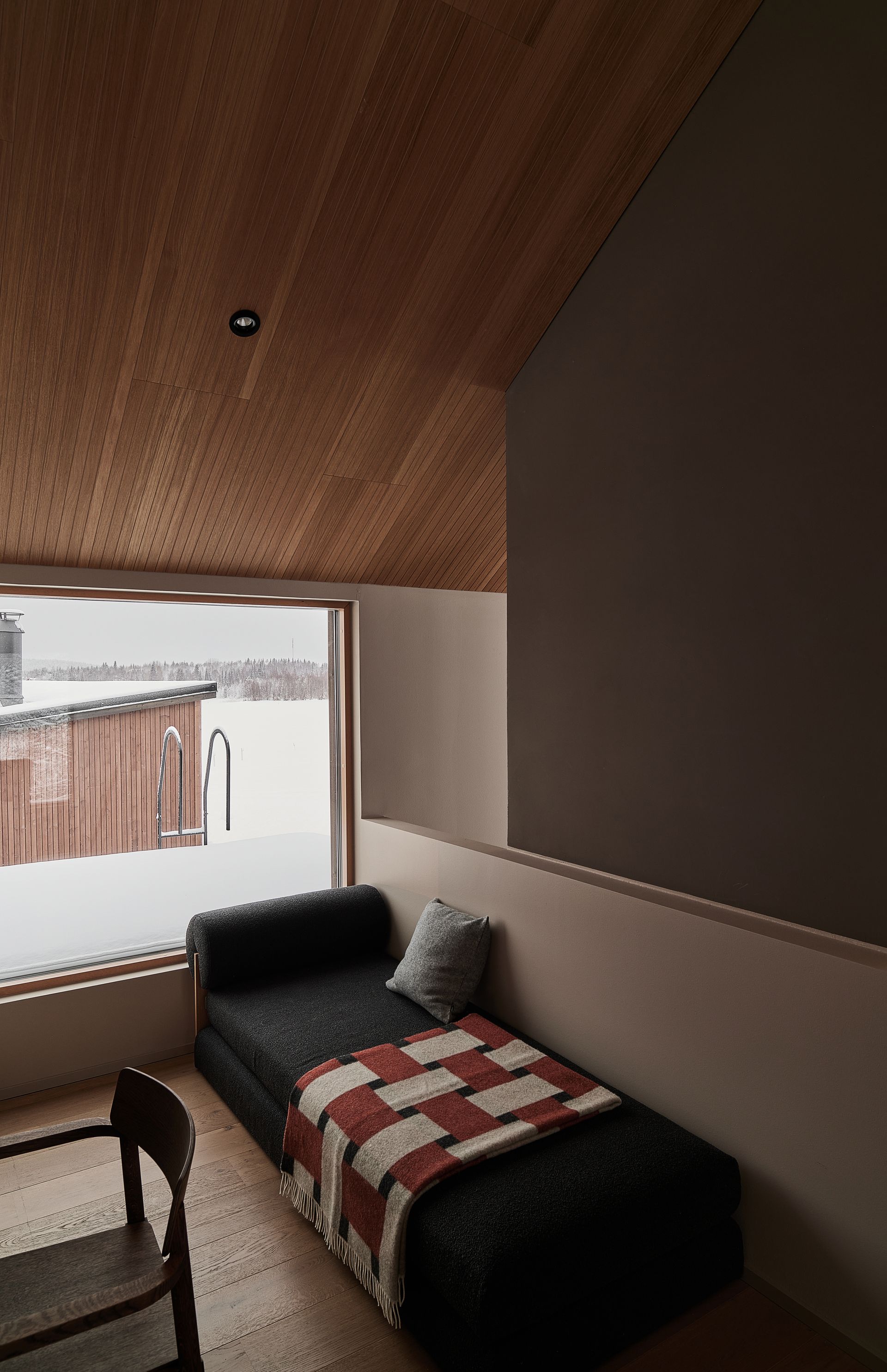 The House of Northern Lights is the largest and most luxurious villa at Joiku Resort, providing an exceptional setting for relaxation and quality time together. The villa features four bedrooms, two modern bathrooms, and a private electric sauna. From the living room’s expansive windows, guests can admire the striking fell landscape while enjoying the warmth of the fireplace. A fully equipped kitchen and an inviting dining area ensure that shared meals are both effortless and enjoyable. Additional convenience is offered by a separate utility room and a practical walk‑in closet.