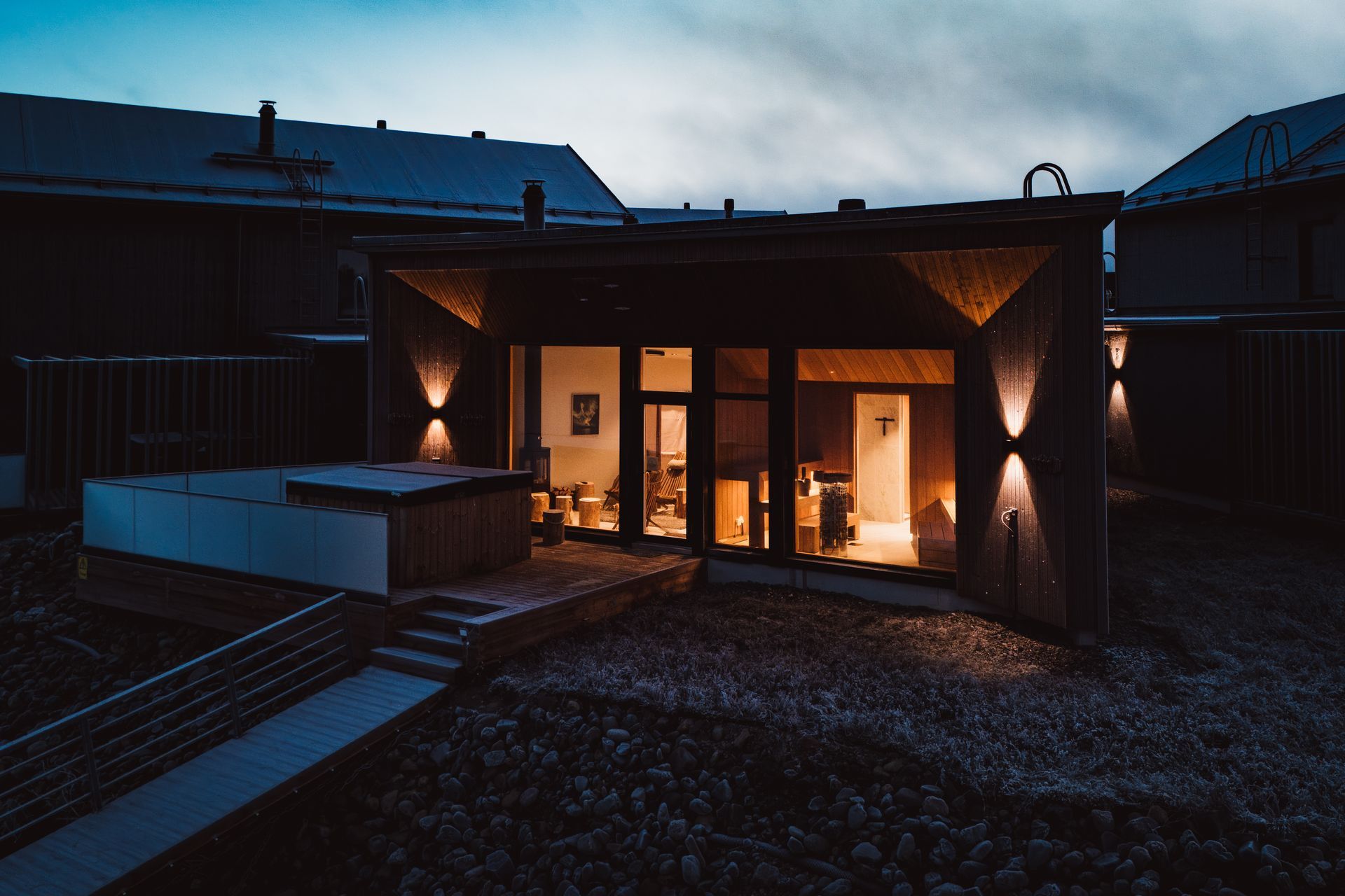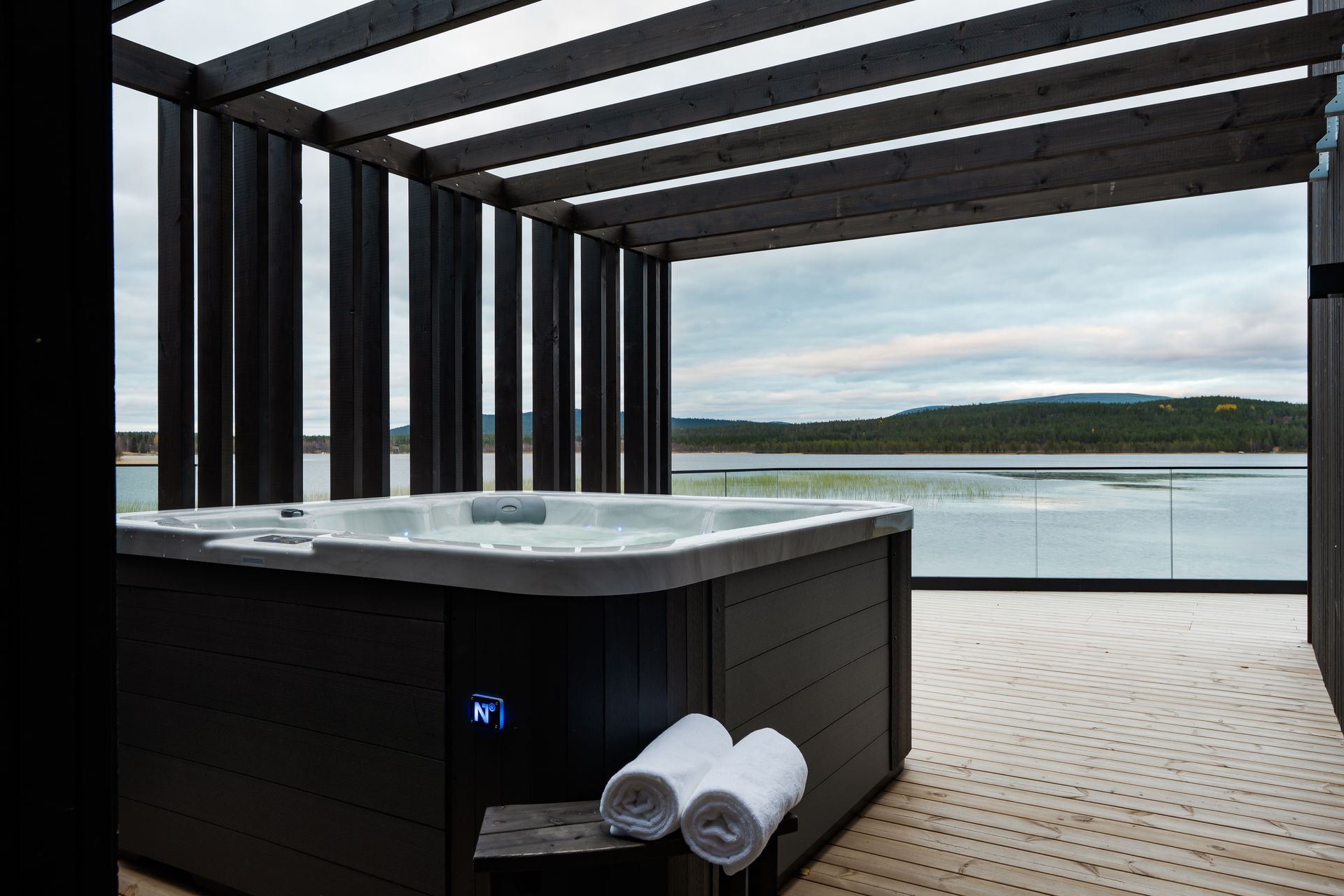 Joiku Resort has a lakeside sauna shared by the villas, featuring not only the sauna itself but also an outdoor jacuzzi, shower facilities, and a lounge area with a fireplace. There is also a grill hut in the resort’s yard area that guests are free to use.