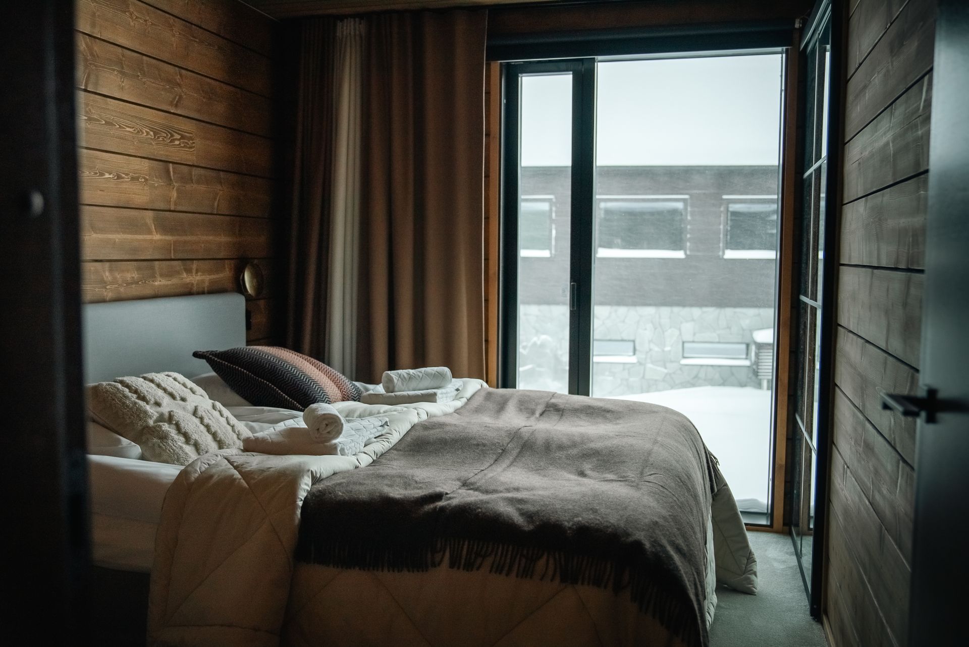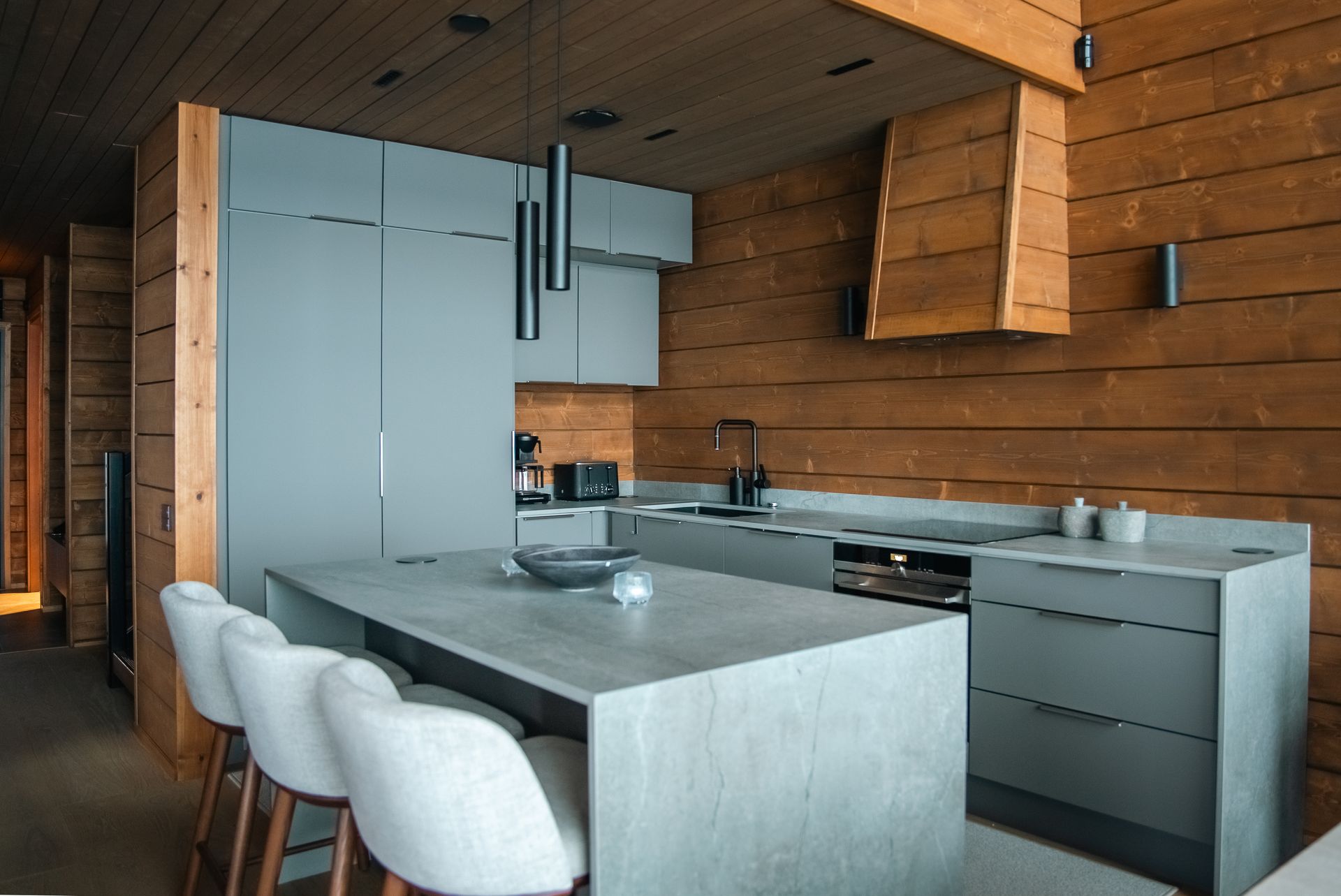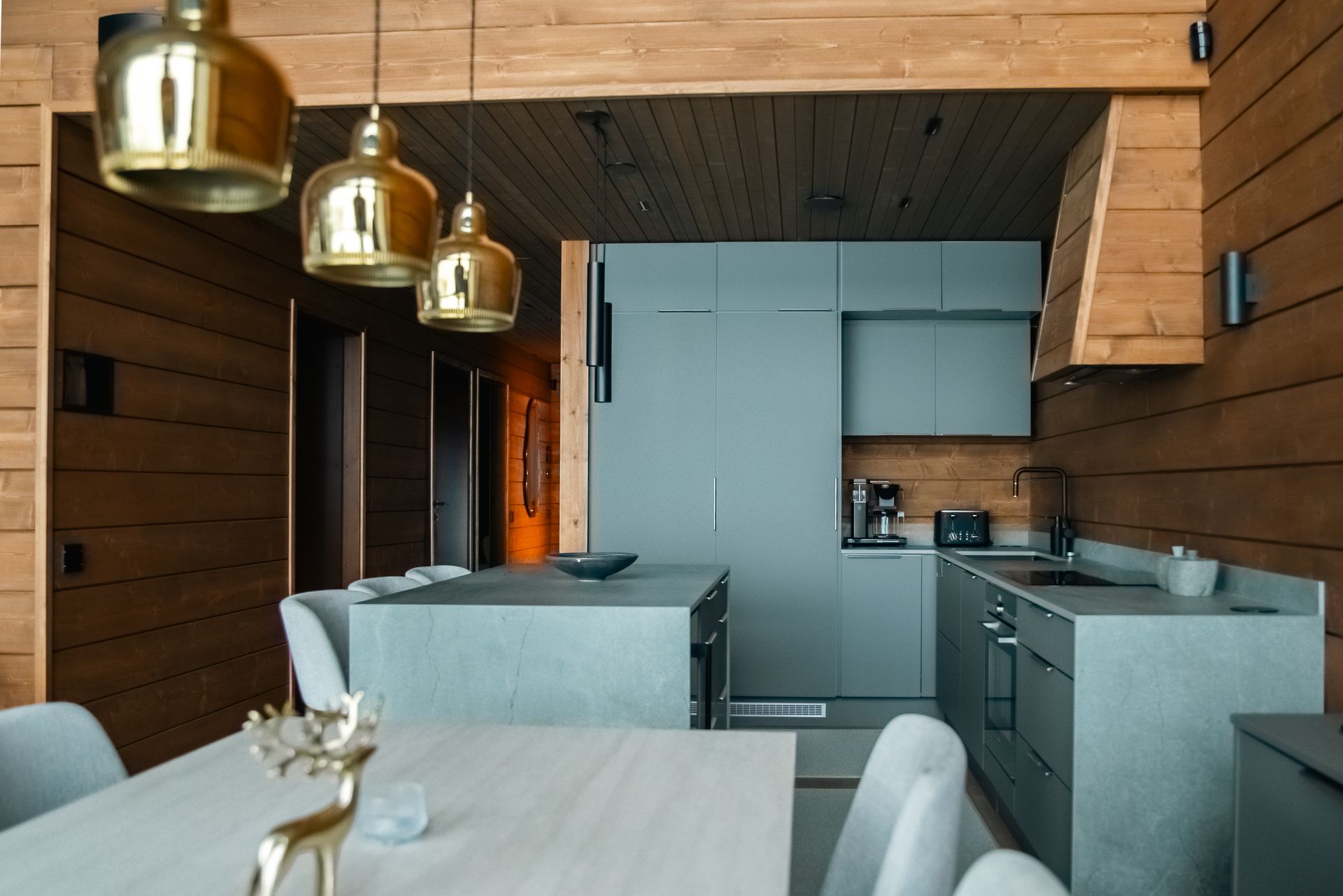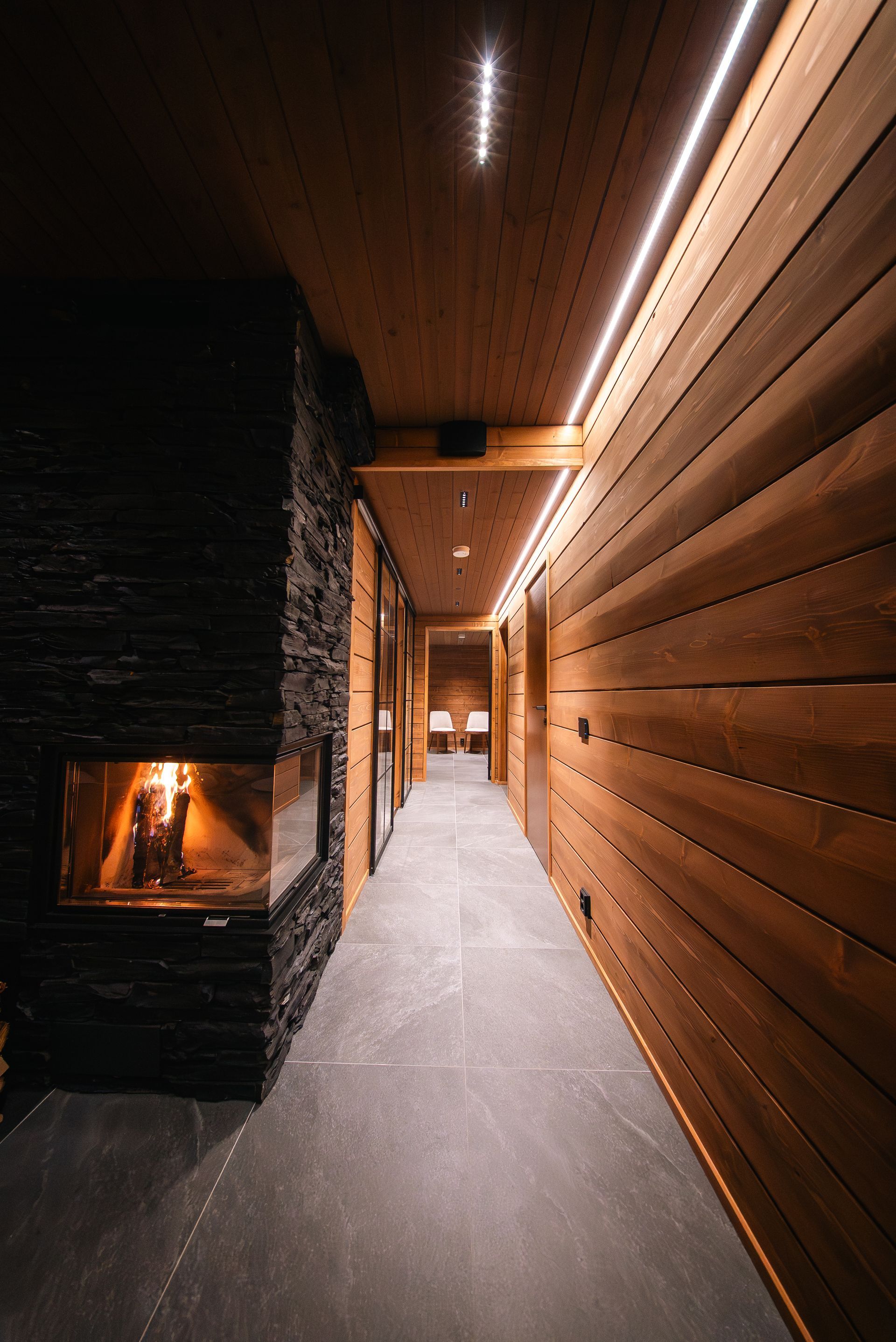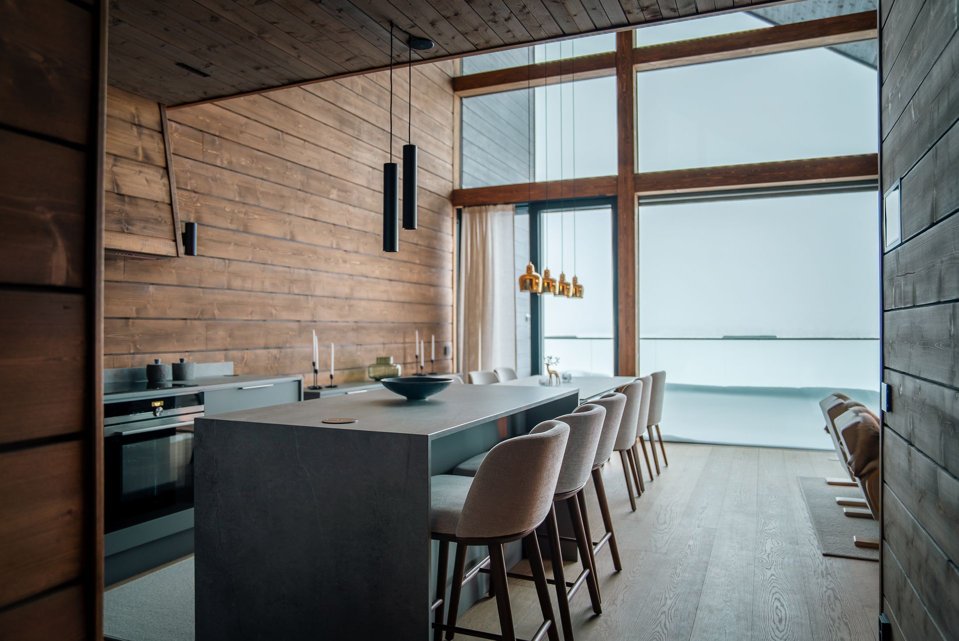 This luxurious villa, completed in 2022, stands on the shores of Lake Äkäslompolo, in the heart of Ylläs’ unique fell landscape. With five bedrooms and four bathrooms, it offers space and privacy even for larger groups. The villa features two cozy living rooms, a modern kitchen, a utility room, and a practical mudroom. For relaxation, there is a private sauna, a cold plunge pool, and two atmospheric fireplaces. High-quality appliances and an integrated sound system complete the comfort. Floor-to-ceiling windows provide breathtaking views of the lake and surrounding fells—a scenery that changes with the seasons.
