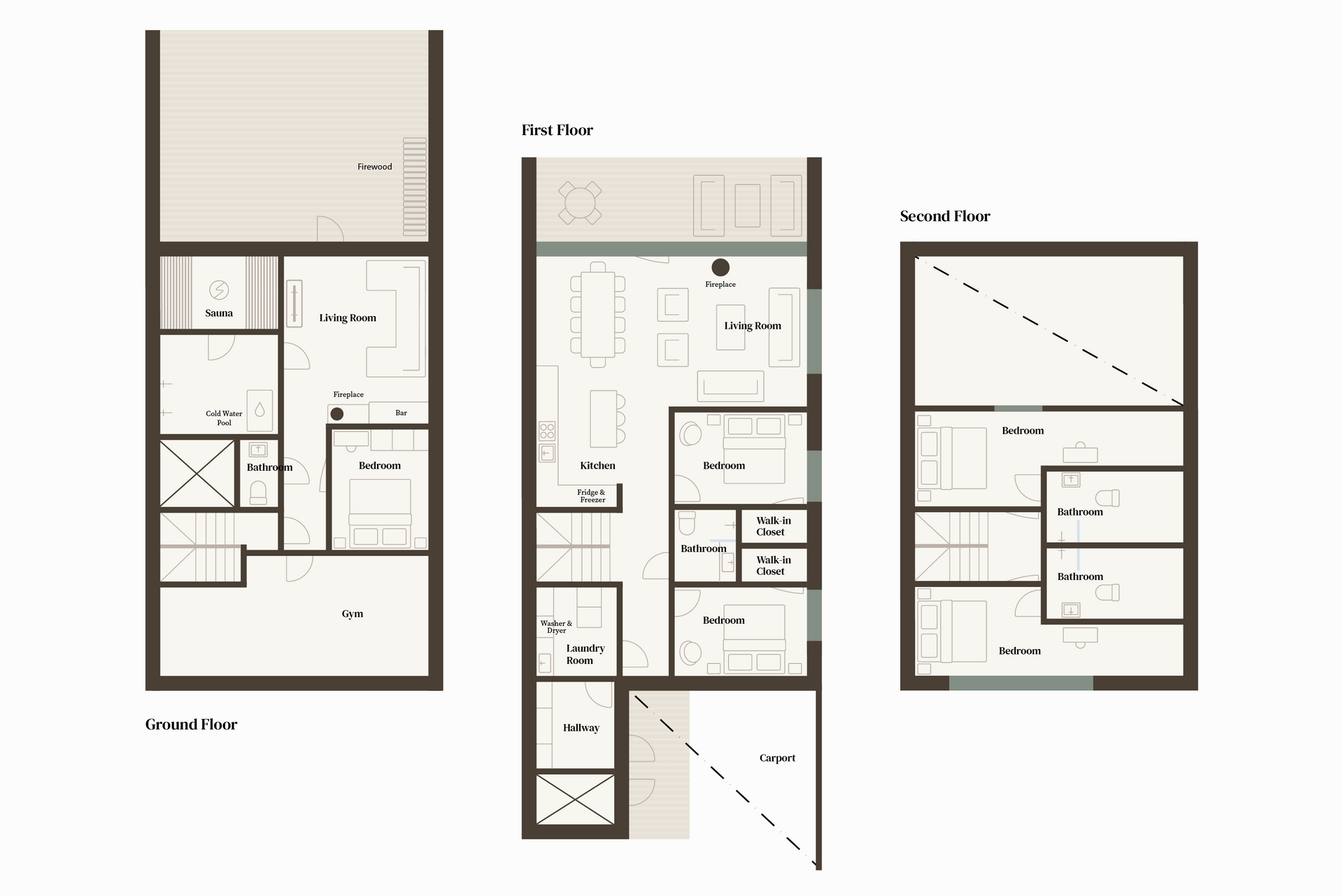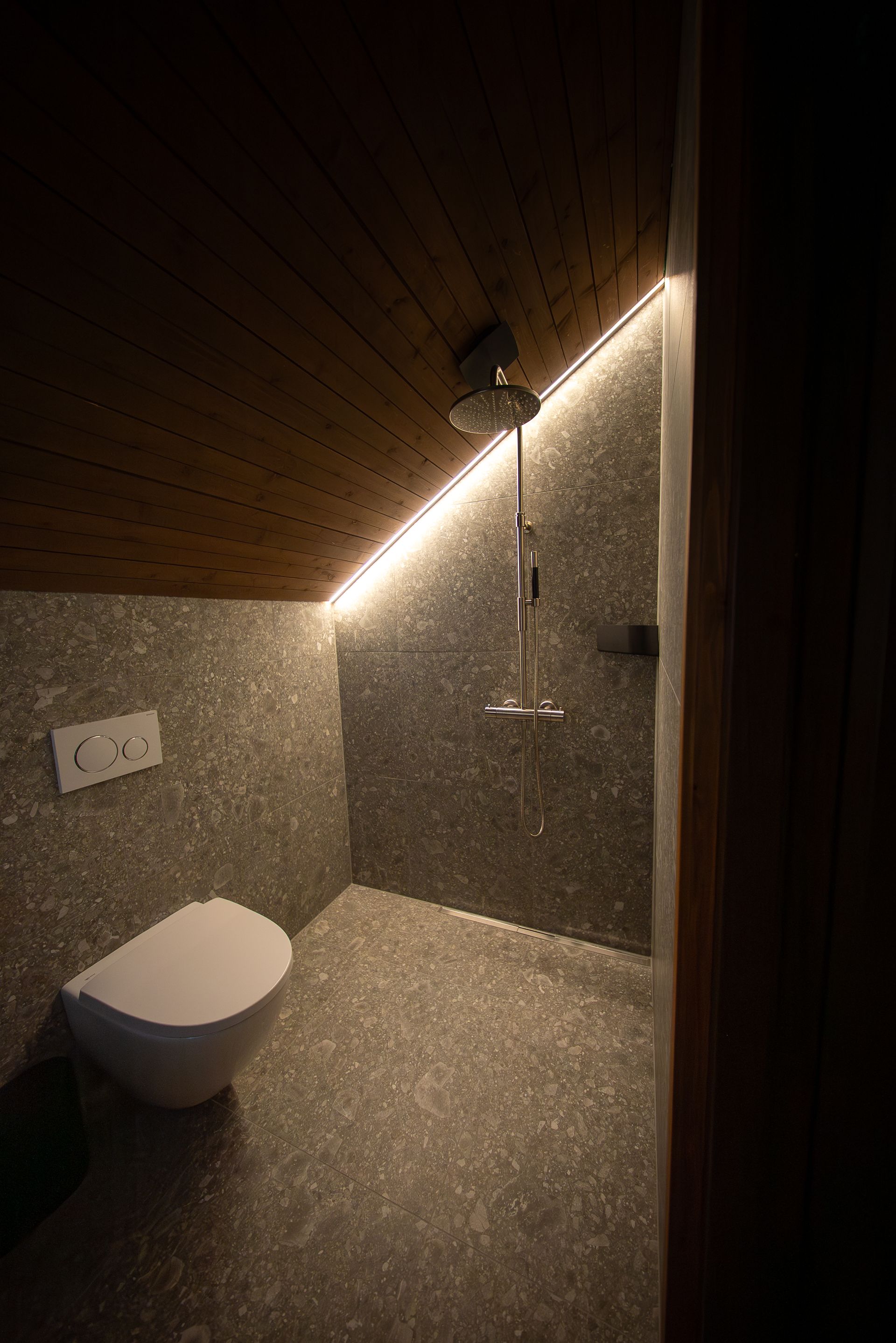 The top-floor bedrooms each have their own private bathrooms, each featuring a shower and a toilet.